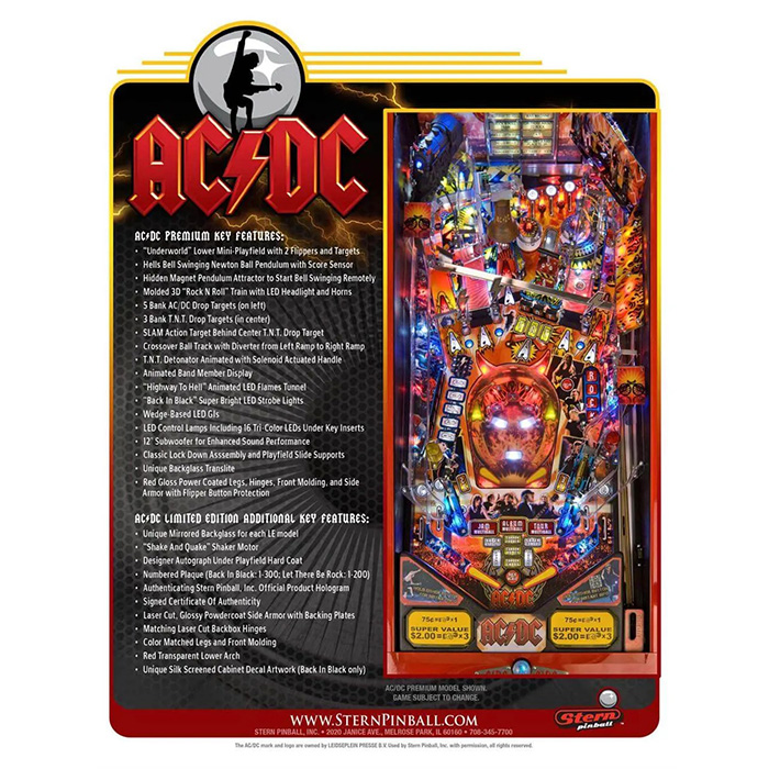 Stern Pinball’s design team, led by the King of Pinball, Steve Ritchie, with programming creativity provided by the legendary Lyman Sheats, worked tirelessly to create a pinball experience worthy of the AC/DC and Stern Pinball monikers.