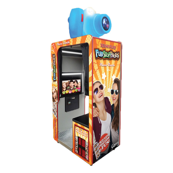 Our latest photo booth brings more fun than ever! The Fun Stop Photo Booth features an awesome Color Changing Camera Topper, 24″ HD LCD Touchscreen, a brand new smartphone-like interface with fun interactive borders and stickers. Customers can choose from multiple print formats like the standard 4 picture 2×6 photo strips, 2-Photo 4×3, 4-photo 2×3, and single photo 4×6. Customers can add custom borders, logos, and advertising.