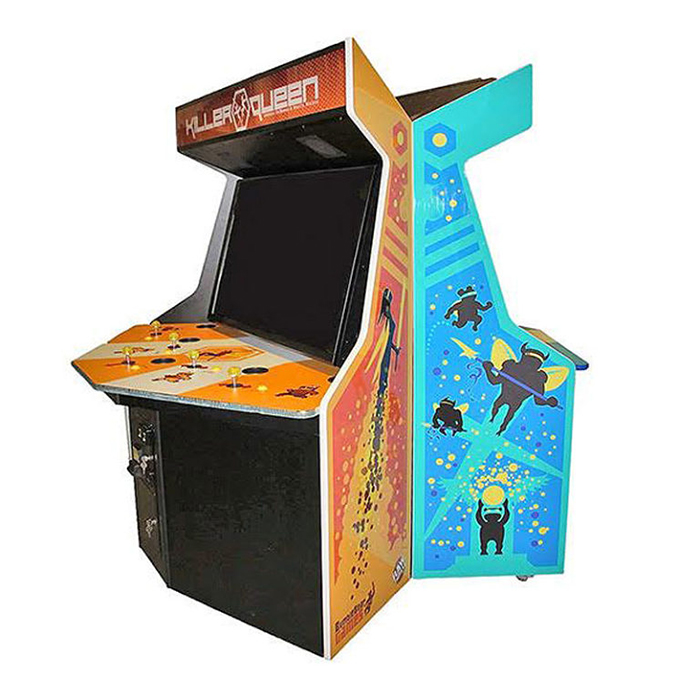 Killer Queen arcade game is available for rent. Killer Queen game comes in two oversized cabinets, each with 52” LCD monitor and 5 controllers for 5 players.