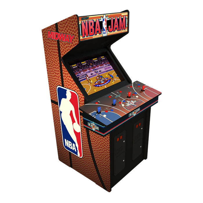 NBA Jam, which features two-on-two basketball, is one of the first real playable basketball arcade games and is also one of the first sports games to feature NBA-licensed teams and players!
