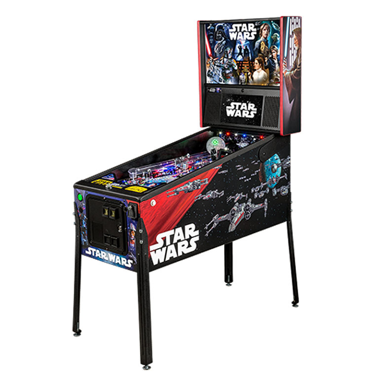 Star Wars pinball will immerse players in the dynamic and challenging Star Wars pinball environment as they battle to restore justice to the Galaxy. Stern’s Star Wars pinball machines are packed with features that provide an irresistible game experience. The game includes select speech and footage from the original Star Wars trilogy, color-changing LED-lighted inserts, and a sculpted TIE Fighter.